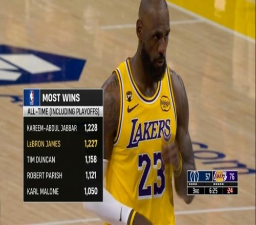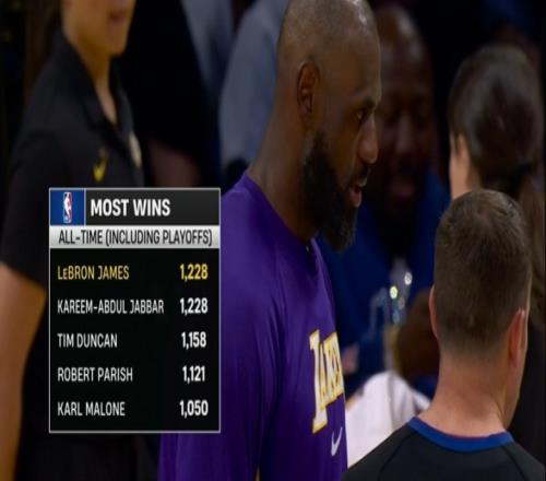 今日赛前,詹姆斯常规赛+季后赛的胜场数为1227场,加上今天的胜利, 詹姆斯常规赛+季后赛胜场数来到1228场,追平贾巴尔,并列NBA历史第一。